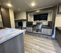 À l’extérieur, profitez d’un auvent électrique à DEL, d’un grand rangement pass-through, et d’une entrée stable Solid Step. Son isolation efficace et son chauffage 20 000 BTU vous assurent un confort optimal, peu importe la saison.
